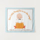 Fondo de banner para baby shower de niño calabaza con un adorable bebé y calabaza en un lindo fondo azul bebé y marrón. Este fondo para baby shower de calabaza se personaliza fácilmente para su evento simplemente agregando el texto que desee.