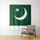 Bandera de Pakistán Una hoja rectangular lleva dos símbolos tradicionales del Islam en un fondo verde - una media luna blanca y una estrella de cinco puntas, donde la media luna indica progreso y la estrella representa conocimiento y luz. Se supone que la franja blanca del lado izquierdo de la bandera representa a las minorías paquistaníes, hindúes, cristianos y budistas, y por lo tanto expresa indirectamente tolerancia religiosa en el país. El blanco, junto con el color verde, también marca paz y prosperidad.