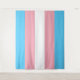 La Bandera del Orgullo Transgénero fue creada por la mujer trans estadounidense Monica Helms en 1999, y se mostró por primera vez en un desfile del orgullo en Phoenix, Arizona, Estados Unidos en 2000. La bandera representa la comunidad transgénero y consta de cinco franjas horizontales: dos azul claro, dos rosa y una blanca en el centro. Las rayas de arriba y abajo son azul claro, el color tradicional para los niños. Las rayas que las rodean son rosas, el color tradicional para las niñas. La franja en el medio es blanca, para aquellos que están transitando o consideran que tienen un género neutral o indefinido.