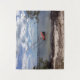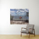 La escena en este tapiz de pared de ZoeSPEAK es una fotografía original de un velero en aguas poco profundas. En la foto, el bote rojo se inclina hacia un lado, enmarcado por manglares, una orilla de arena y un gran cielo azul lleno de nubes blancas onduladas.