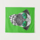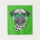 Características del este diseño un retrato del barro amasado adentro con gafas de sol y una bufanda a cuadros blanco y negro.
