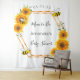 Elegante, divertida, tapiz de ducha de bebé de verano. Un fondo blanco chic, celebrando un bebé niño o niña. Con un marco geométrico de oro falso. Decorado con girasoles rústicos amarillos y naranjas pintados con acuarela y abejas felices. Con el texto: Mamá a Abeja y el nombre de la madre. Personaliza y agrega el nombre de la mamá a abeja y una fecha. Se puede utilizar como decoración de pared para la ducha de bebé o como telón de fondo para fotos.