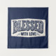 Bendito con amor - Tapiz decorativo de tipografía (fondo azul) Eleva tu espacio con el encanto más sincero de este tapiz "Bendito con amor", situado en un fondo azul profundo para un rico contraste y profundidad. La audaz letra de estilo vintage está intricadamente llena de detalles florales, combinando elegancia dramática con calidez emocional. Una declaración atemporal para salones, dormitorios o espacios sagrados, perfecta para aquellos que aprecian la conexión, la gratitud y la decoración significativa.