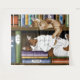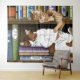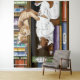 Dos lindos gatos durmiendo en estanterías llenas de divertidos libros de gatos. Lector de libros ávido y amante del gato.