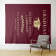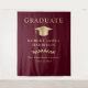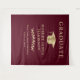 Elegante tapiz de bienvenida de la fiesta de graduación roja borgoña y mostrador de fotos con una gorra de oro, "Graduado" y el nombre del graduado, escuela y curso de clase en tipografía clásica.