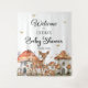Un encantador diseño de Fiesta de Bebé con ciervos sonrientes, hongos de hadas y caligrafía elegante. Puedes personalizar esto con tus propios detalles.