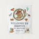 Hermosa y caprichosa bienvenida de tela tejida para la fiesta del primer cumpleaños del vaquero del oeste, con equipo de vaquero y animales de rancho en tonos terracota marrones y azules para niño. Silla de montar, toro, caballos, cactus y lazo. Todo lo que un vaquero necesita. ¡Es su primer rodeo! Coloque esta tela tejida en un lugar prominente para dar la bienvenida a los invitados. Un lugar encima de la mesa de snacks y favores sería genial.