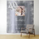 Una alfombra de bienvenida para una fiesta de cumpleaños 40 glamurosa. Un fondo metálico de aspecto plateado falso decorado con polvo de brillo falso. Personalice y agregue una foto de alta calidad, nombre y fecha. El número 40 está escrito con una fuente estilo globo. También se puede utilizar como telón de fondo para cabina de fotos y decoración de pared de fiesta.