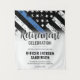 Este diseño incluye una bandera de la fuerza policial con rayas blancas y negras, y una delgada franja azul. La "Celebración de la Jubilación" se asienta sobre todos los detalles del fiesta para la celebración de la jubilación del oficial de policía, el sheriff, el capitán o el jefe.