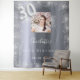 Una alfombra de bienvenida para una fiesta de cumpleaños 30 glamurosa. Un fondo metálico plateado falso decorado con polvo de brillo falso. Personaliza y añade una foto de alta calidad, nombre y fecha. El número 30 está escrito con una fuente estilo globo. También se puede utilizar como telón de fondo para cabina de fotos y decoración de pared de fiesta.