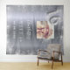 Una alfombra de bienvenida para una fiesta de Sweet 16 femenina y glamurosa, cumpleaños número 16. Un fondo metálico plateado falso decorado con polvo de brillo falso. Personaliza y agrega una foto de alta calidad, nombre y fecha. El número 16 está escrito con una fuente estilo globo. También se puede utilizar como telón de fondo para cabina de fotos y decoración de pared de fiesta.