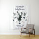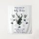 Diseño personalizado moderno y rústico de ciervo con flores azules y texto personalizado. Un diseño chic de campo con animal del bosque, astas de ciervo y flores. En azul polvoriento, marfil y verde menta. ¡Perfecto para tapiz de pared de bienvenida para baby shower!