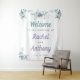 Tapiz Bienvenido Boda Flores Azules Acuarela Púrpura