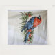Pájaro rojo y azul bonito sentado en un tapiz de ramas huecas. Decoren su hogar para Navidades con este arte festivo en la pared.