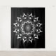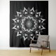 Mandala blanca sobre fondo negro. Diseño geométrico simétrico ornato.