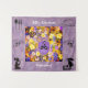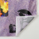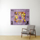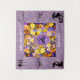 Una serie de flores multicolores se exhiben detrás de un marco oval de lavanda y amarillo que dice 'Flores de amor... para siempre. Dos pequeñas aves de color blanco y negro en el centro con corazones que suben. El texto es personalizable.