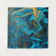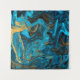 Tapiz Blue and gold marbling pattern. Golden marble liqu
