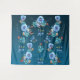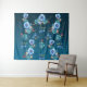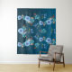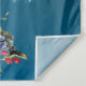 Buques de Cornflowers azules con acuarela de capuchas rojas y hojas verdes doradas en una mezcla creativa de fondo azul turquesa