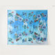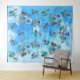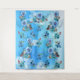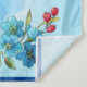 Bouquets de Cornflowers azules en acuarela con brotes rojos y hojas verdes doradas en una mezcla creativa de un fondo azul turquesa para las recién casadas