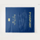 Pasaporte azul para una boda de destino. Personalízalo con los detalles de tu evento.