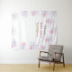 Pancarta de bienvenida de boda de invierno o señal de tapiz con copos de nieve rosados y morados. Incluye hermosa fuente de escritura en diseño de texto con brillo y falso oro. Tener una ducha de boda con tema de invierno es perfecto si se va a realizar en diciembre o invierno. Lindo y femenino cartel de boda. Ilustración digital de Kristine Lee. Para más, visite www.kristineleedesigns.com