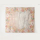 "Tapiz de fondo para fotos de boda de madera rústica con hierba de pampas floral boho rubor." Lavado de acuarela de melocotón suave con rosas de color rosa pálido, amarillo mantequilla y blanco suave pálido se emparejan con la hierba de pampas, helechos y follaje de eucalipto verde para un impresionante fondo para fotos para sus invitados de boda. Creado a partir de la obra de arte de acuarela pintada a mano por la artista internacionalmente conocida y licenciada, Audrey Jeanne Roberts, derechos de autor.