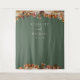 Este elegante tapiz de bodas | fondo de la cabina de fotos con naranja quemado a color de agua pintada a mano y hojas de terracota, dahlias crema y beige, y hermosos rosas de color rojizo con un sabio fondo verde con los nombres de la novia y del novio y fecha de boda. Buscar elementos coincidentes en la colección Sage Autumn Romance.