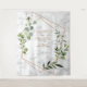 Moderno y trendy, este diseño de tapiz de boda presenta un falso cobre geométrico adornado con vegetación de eucalipto en acuarela, sobre una textura de falso mármol blanco. Los nombres de la pareja y algunos detalles de la boda están en un color cobre a juego. Derechos de autor Elegant Invites. Reservados todos los derechos.