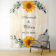 Un fondo dorado de color agua. Decoradas con hojas de eucaliptos de color verde acuático, brotes, vegetación, girasoles y hojas de oro falsas. Personalice y añada los nombres de la novia y el novio, y la fecha. Se puede utilizar como cartel de bienvenida, como decoración de paredes fiestas o como telón de fondo de una cabina de fotos.