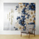 Tapiz Boda Navy Blue White Golden Floral Silver