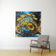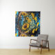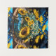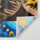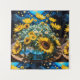 Florero sobre mesa, con paisaje en la noche de fondo, en colores luminosos. Tamaño 8,000 x 8,000, pixeles, 80 pulgadas. Arte digital en paisaje.