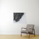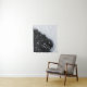 Fotografía paisajística de un bosque de abeto cubierto de nieve en blanco y negro.
