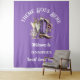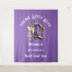 Un par de botas vaqueras de cuero trabajado, marrones y moradas con un patrón floral, tiene un vaso de burbujas y martini con estilo de acuarela junto a ellas y flores moradas. Están colocadas sobre un fondo lavanda que tiene plantillas de texto blanco editables que se pueden personalizar para adaptarse a su celebración especial. Este colgante de pared elegante es ideal para un evento especial con tema occidental, country "botas y brillo" o "botas y burbujas".