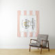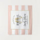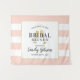 ¡Brindemos por la novia! La exhibición de bienvenida / letrero de fondo del almuerzo de la ducha nupcial de la boda presenta un texto negro suave y elegante que se puede personalizar con el nombre de la futura novia, el título del evento y la fecha. El texto está acentuado por flautas de champán / mimosa de color dorado. Un marco de color dorado rodea el texto y un patrón chic de rayas horizontales anchas de color rosa claro y blanco bordea el diseño.