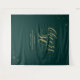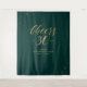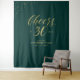 Esta moderna tapicería es perfecta para una fiesta de cumpleaños con un tema de color dorado y verde oscuro chic. Tus invitados disfrutarán tomando una foto con este sofisticado telón de fondo de la fiesta y recordarán tu día especial. El diseño presenta tipografía dorada "Brindis por 30 años" y gráficos brillantes. Puedes personalizar el nombre, evento y fecha en la parte inferior de la tapicería.