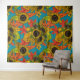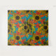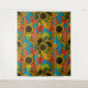 Ramo de girasoles dibujado a mano, hojas de otoño, arándanos y moras y escarabajos