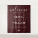 Make a grand first impression with this Burgundy & Ivory Wedding Welcome Backdrop. This high-impact banner features a luxurious, deep wine-red palette paired with clean ivory typography, creating a sophisticated focal point for your ceremony or reception entrance. Perfect for formal vineyard weddings, black-tie autumn celebrations, or moody winter ceremonies, it serves as both a warm greeting and a stunning, photo-ready background for your guests.