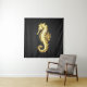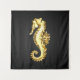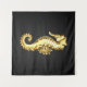 Artístico, poligonal, caballito de mar de chispa, Relieve metalizado dorado sobre fondo negro.