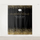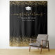 Tapiz personalizado de cabina de fotos de graduación con un fondo negro elegante que se puede cambiar a cualquier color, brillo de destellos de oro elegante, birrete, el año de la promoción y el nombre de la escuela o universidad.
