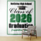 Personaliza tu propia tapiz para cabina de fotos de fiesta de graduación de la escuela secundaria o universidad Clase de 2026 verde para un graduado de secundaria o universidad. Letras de equipo geniales para el año en decoración conmemorativa para los estudiantes de último año.