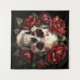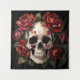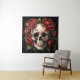 El tapiz presenta gótico acuarela de arte de un cráneo humano rodeado de rosas rojas contra un fondo negro. El cráneo sonriente tiene marcas rojas. Este arte oscuro morboso es grandioso para cualquier momento, pero sobre todo para la espeluznante temporada de Halloween.