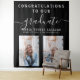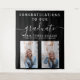 Celebra el éxito de tu graduado y haz una fiesta sencilla con este fondo de tapiz de graduación de dos fotos de caligrafía de guion minimalista sobre fondo negro que puedes colgar o pegar en tu pared.