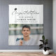Diseño moderno de caligrafía con tapa de graduación y foto en blanco y negro, simple y único. gran banner personalizado para el fondo de la fiesta de graduación.