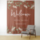 Decoración de boda florido y sobrio con suelo de terracota, decoración elegante con caligrafía de diseño, follaje de hojas botánicas, diseño minimalista sencillo y minimalista, florido de color blanco, señalización de bienvenida boda, decoración elegante de la recepción matrimonial, estilo boda clásico tradicional, decoración boda simplista, elegante color boda moderno.