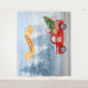 Tapiz Camioneta Navideña Roja Rústica con Monograma Fond