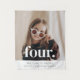 Un moderno cartel de bienvenida de cumpleaños número 4 con espacio para agregar tu propia foto.