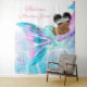 La sirena de la ducha de bebé fondo con adorable sirena de bebé con cola verde azulada en un hermoso fondo de la cola de la sirena marina. Este fondo de ducha de bebé de sirena extra grande se personaliza fácilmente para tu evento simplemente agregando tu texto en el estilo de letra y color que prefieras. También puede cambiar el tamaño según sea necesario.