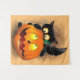 Tapiz Cat Fun Halloween Character biting a Pumpkin