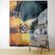 Dos hurones robando un juego de llaves encima de un cherub de piedra