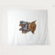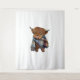 Cute bebé de vaca de West Highland con bufanda envuelta en el pecho